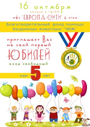 11 октября 2016 года фонд "ЧиЖ" отмечает свой юбилей, нам 5 лет!