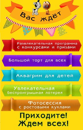 - развлекательная программа с конкурсами и призами для детей и взрослых;
